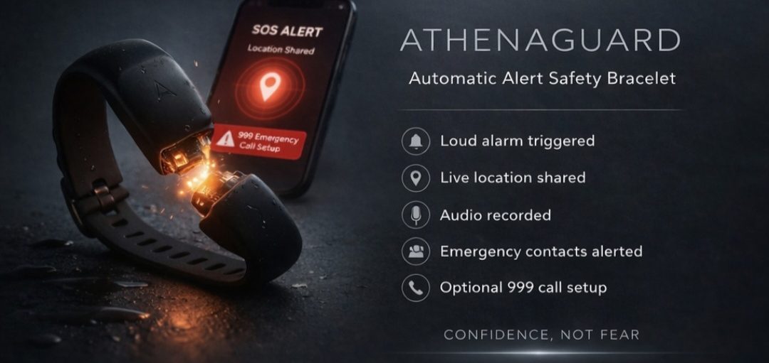 The goal of Athenaguard is to provide a more instinctive and reliable way to signal for help, designed to function even when the user is stressed,distracted, or unable to interact with a screen. By combining discreet wearable hardware with a supporting mobile application, Athenaguard aims to reduce the time and effort required to alert others and share critical information.